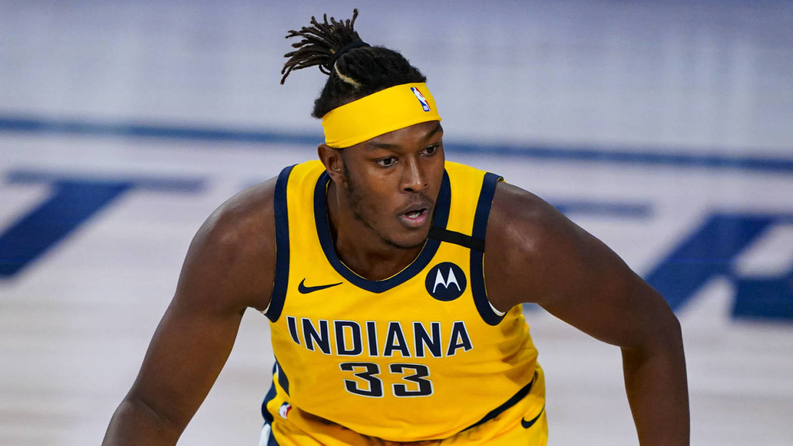 赛后,步行者中锋迈尔斯-特纳接受媒体采访。