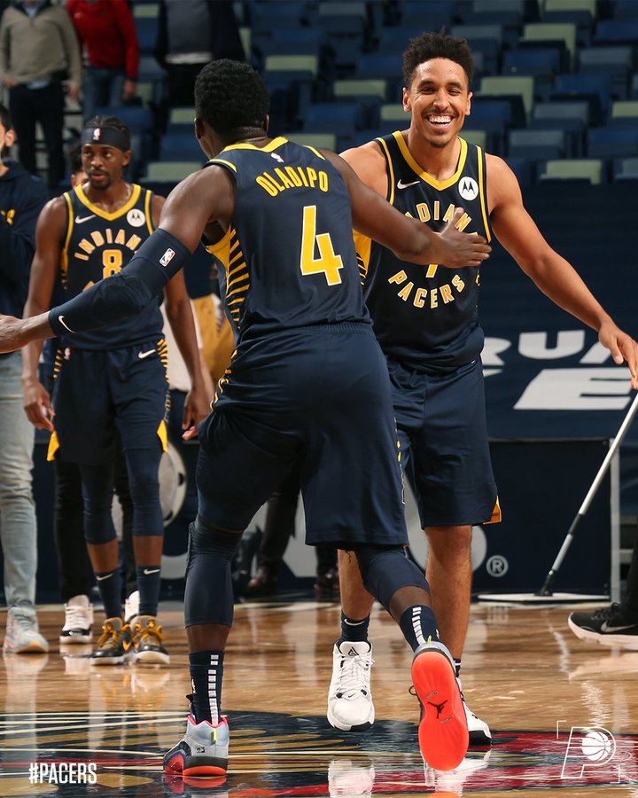 赛后,步行者官方更新推特,晒出一组球员们的赛场照庆祝本场比赛的胜利。