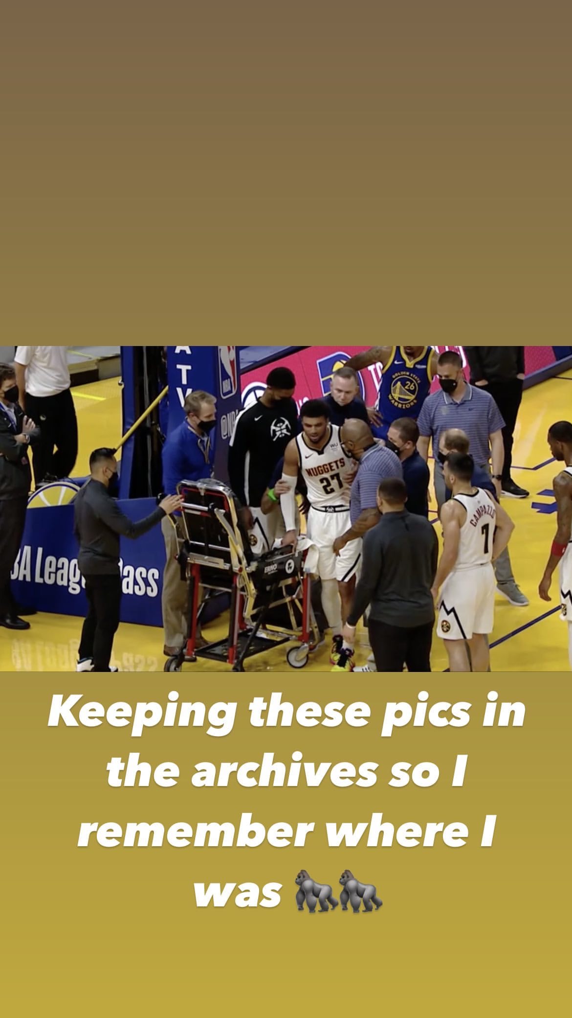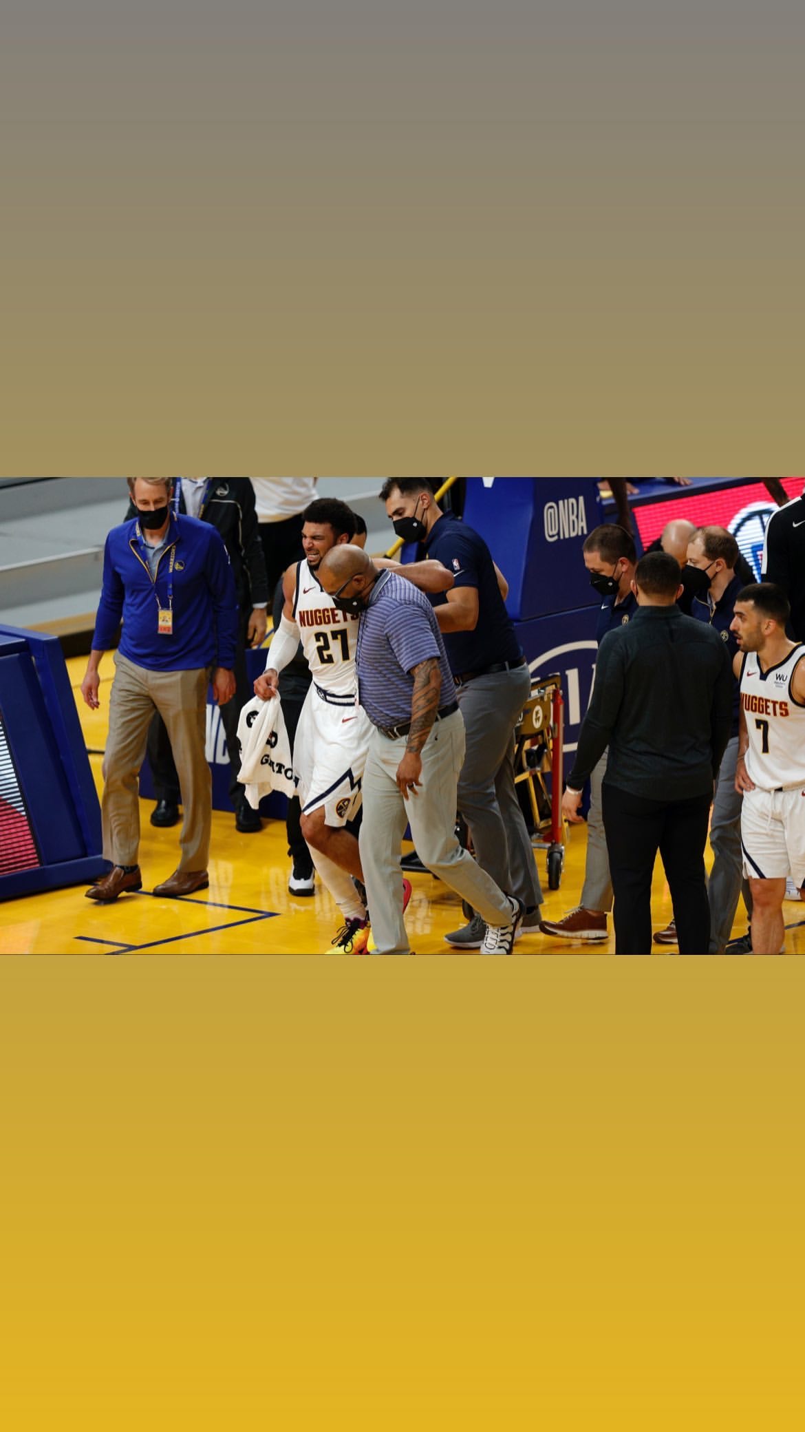 90看球网04月14日讯 掘金后卫贾马尔-默里今日被官方宣布遭遇左膝十字韧带撕裂,随后他更新Instagram发布自己受伤离场的图片(注:默里本人发布如上黑白图片)表达康复决心。