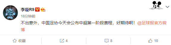 看球吧7月13日讯 据媒体人李璇的消息,如不出意外,中国足协今天就会公布中超联赛第一阶段的赛程。