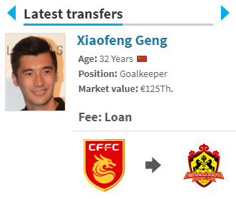 看球吧7月29日讯 今晚,德转管理员朱艺在微博上透露,华夏幸福门将耿晓峰可能转投内蒙古中优。
